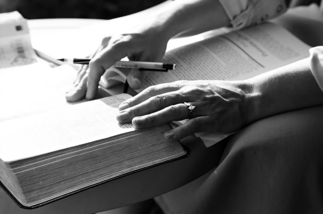If you are not currently participating in a Bible study or doing one on your own, look for one. If there isn’t one in your church or anywhere nearby, led by someone trained to teach the Bible, ask your pastor to start a Bible study. Another option is to use a prepared curriculum, such as one of Beth Moore’s Bible studies, with DVDs and a workbook. N. T. Wright’s For Everyone Bible study guides are also an excellent resource. Use them on your own or get a group of friends to join you.